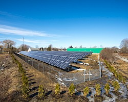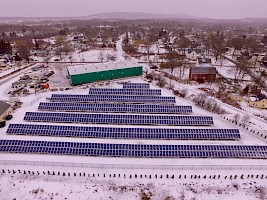 Most of the property here at Migis is shaded, so our array is in Rockland, Maine, at the site of a former gravel pit. Through net metering, our electric bills are offset by the array, 90 miles away. We can continue to enjoy our forested and shady 125 acres here at Migis while a sunny area in Rockland keeps us powered up.