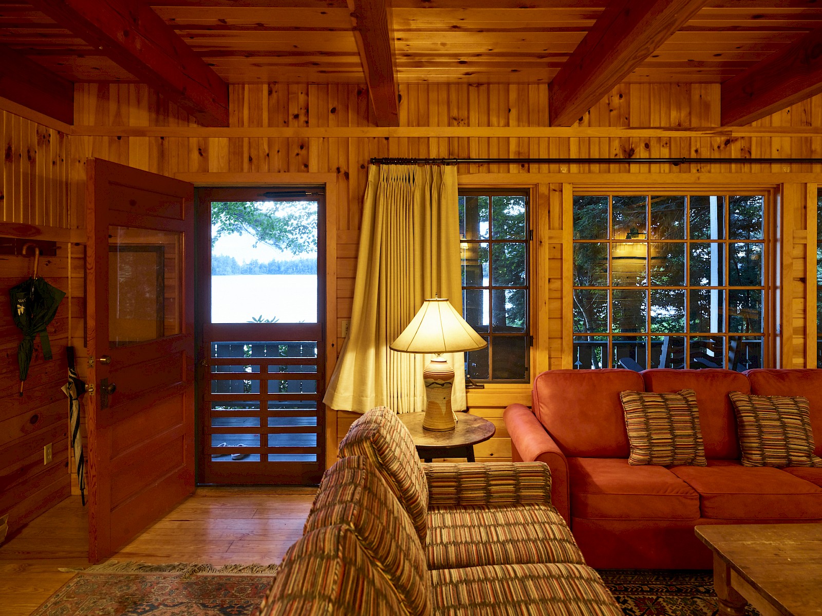 Stay in one of our Main Lodge’s eight spacious rooms or in a private cottage. You’ll enjoy your own porch with views of the lake, handsome appointments in every room, fieldstone fireplaces, contemporary bath appointments, fresh flowers, and housekeeping service, including fresh ice and firewood delivered by our cabin stewards.