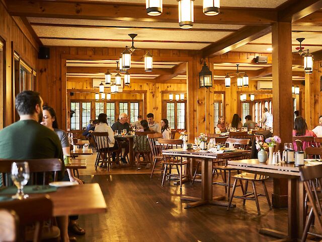 Families will be served in the Hancock Room during breakfast and lunch. During dinner, children can participate in our traditional "Zoo" program available starting June 16. This includes, at no additional charge, a supervised children's evening program from 5:30 pm to 9:00 pm with dinner from the special children's menu and supervised playtime after dinner. This enables parents to dine at their leisure in the Main Lodge dining room or Cookout Point.