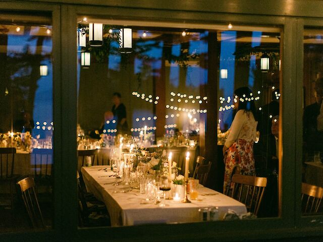 Migis Lodge is a magical location for a wedding and reception... imagine the wedding party arriving at their ceremony on our classic 1947 Chris Craft, and exchanging vows under the pines with Sebago Lake and Maine's Western Mountains serving as a stunning backdrop. After the ceremony, the couple and guests will enjoy cocktails, dinner and dancing in our lakeside lodge, and perhaps finish the evening around a bonfire on our front terrace.
